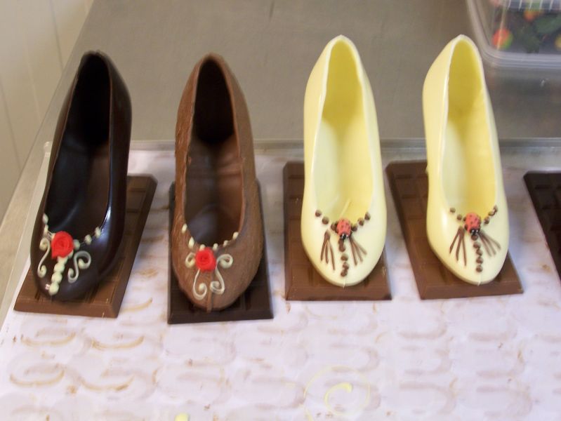 Pumps maatje 38 melk - puur - witte chocolade kan ook gevuld worden met heerlijke bonbons. Diversen afwerkingen met suiker gekleurd of gewoon met een strikje. Er zijn veel mogelijk heden!